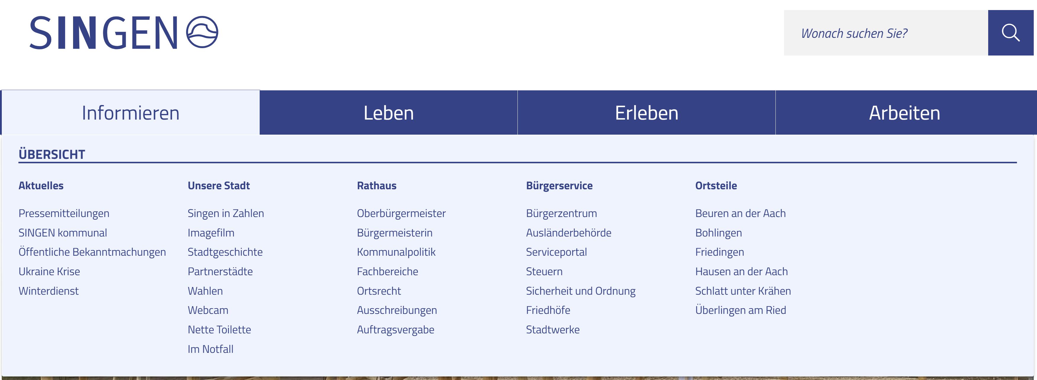 Dann sind Sie auf der jeweiligen Unter-Seite.