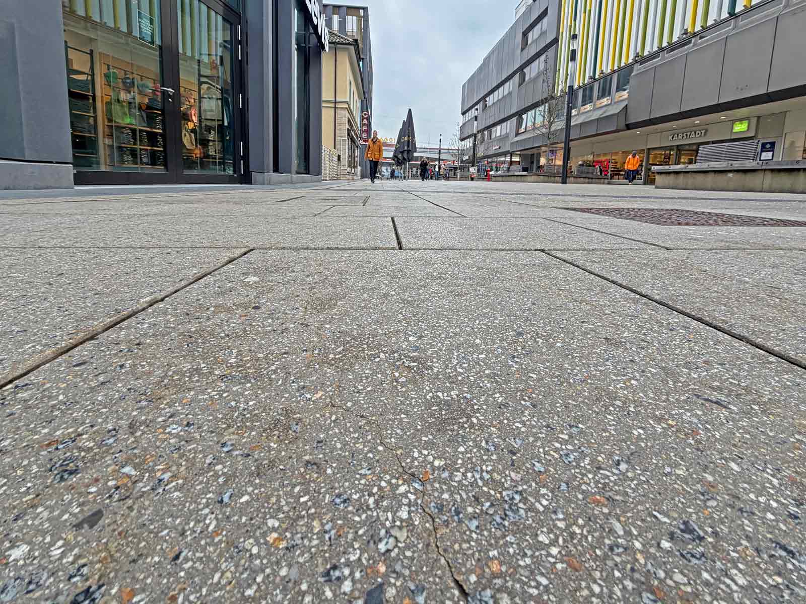 Ab 18. Februar werden in der Fußgängerzone gerissene Betonplatten im Rahmen der Gewährleistung ausgetauscht.
