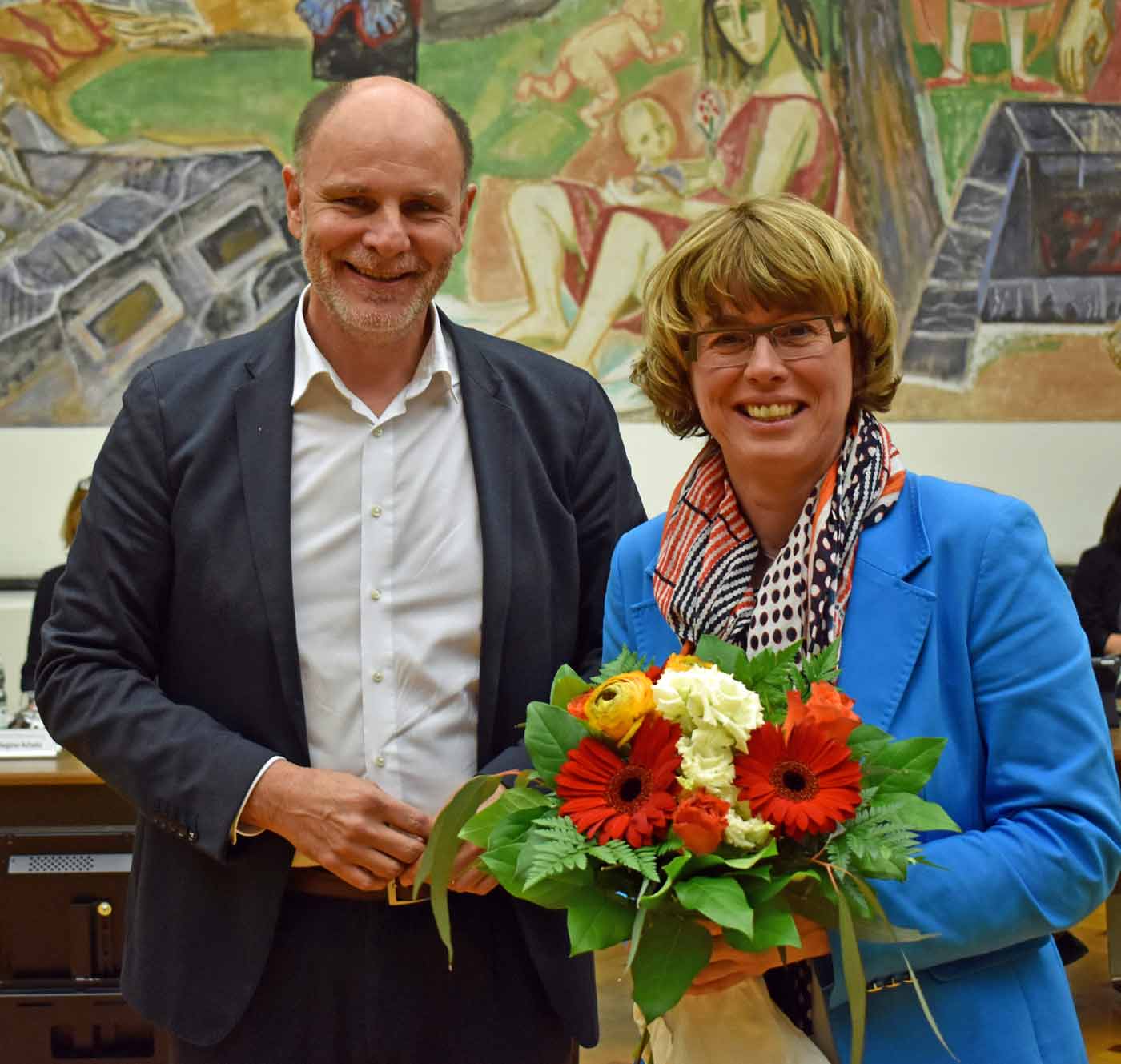 Ute Seifried bleibt Singens Bürgermeisterin: sie wurde vom Gemeinderat mit großer Mehrheit für weitere acht Jahre wiedergewählt. Oberbürgermeister Bernd Häusler sprach ihr seine Glückwünsche aus und überreichte ihr einen Blumenstrauß. In ihrer Rede betonte Seifried, dass sie weiterhin mit OB Häusler gemeinsam die Stadt vorwärtsbringen möchte. Die Vereidigung von Ute Seifried soll noch vor der Sommerpause im Gemeinderat erfolgen.