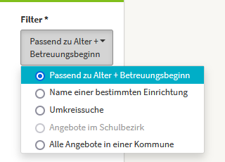 Sie können die Suche weiter anpassen, indem Sie Kriterien wie Betreuungszeiten, Träger der Kitas oder weitere Optionen auswählen.