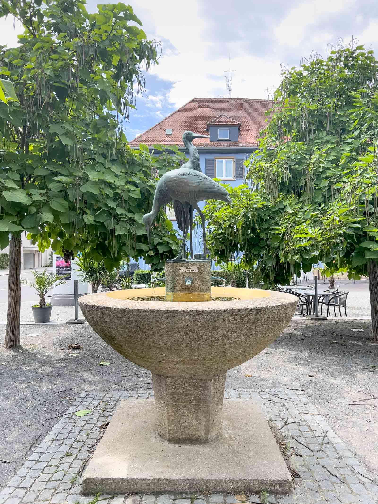 Der Storchenbrunnenplatz an der Ekkehardstraße ist ein wichtiger Bestandteil der östlichen Innenstadt. Seit seiner Umgestaltung im Jahr 2017 präsentiert sich der Storchenbrunnenplatz als neu strukturierte, längsgerichtete Platzfläche, die zum Verweilen einlädt. Insgesamt zehn sommerblühende und dennoch klimaresiliente Laubbäume sowie im Wechsel angeordnete Sitzbänke schaffen Aufenthaltsqualität.